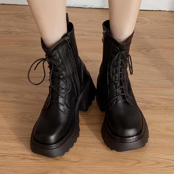 รองเท้าบูทส้นตึกสูงสำหรับผู้หญิง 8.5 ซม. รองเท้าบูทข้อเท้าแฟชั่นฤดูหนาว