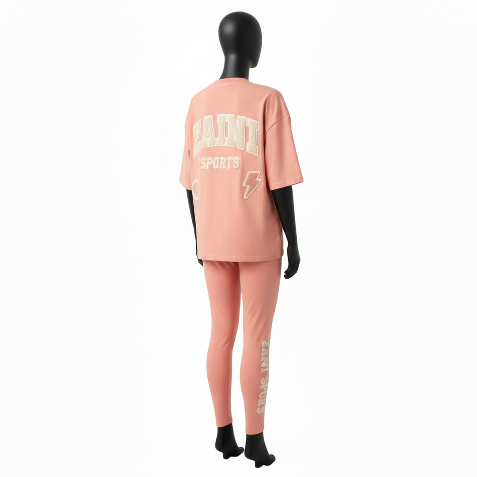 ชุดเสื้อและเลกกิ้งผ้าฝ้ายผสมสแปนเด็กซ์คุณภาพสูงสำหรับผู้หญิง 230 GSM เนื้อผ้านุ่มระบายอากาศได้ดี ปักโลโก้ ชุดสำหรับผู้หญิง