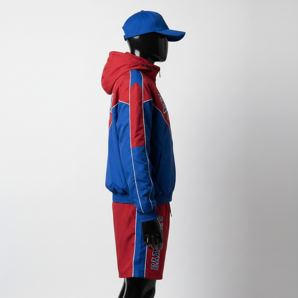 Women High Quality Nylon Polyester Windbreaker Short Set Soft Touch Fabric Contrast Panel Design Custom Logo Printing plus size