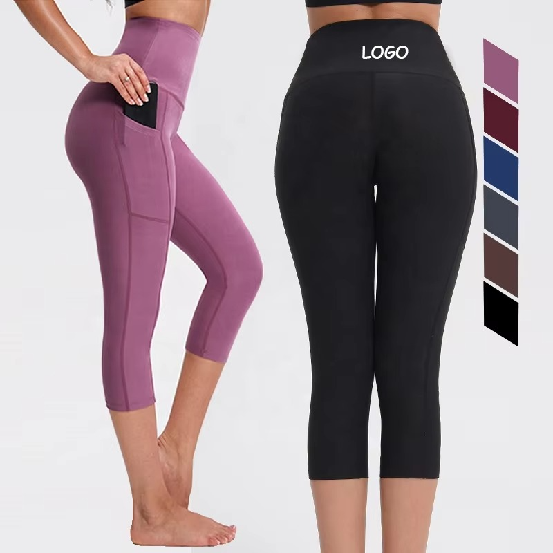 กางเกงโยคะฟิตเนสออกกำลังกายสำหรับผู้หญิง คุณภาพสูง กระชับสัดส่วน เก็บหน้าท้อง มีกระเป๋า