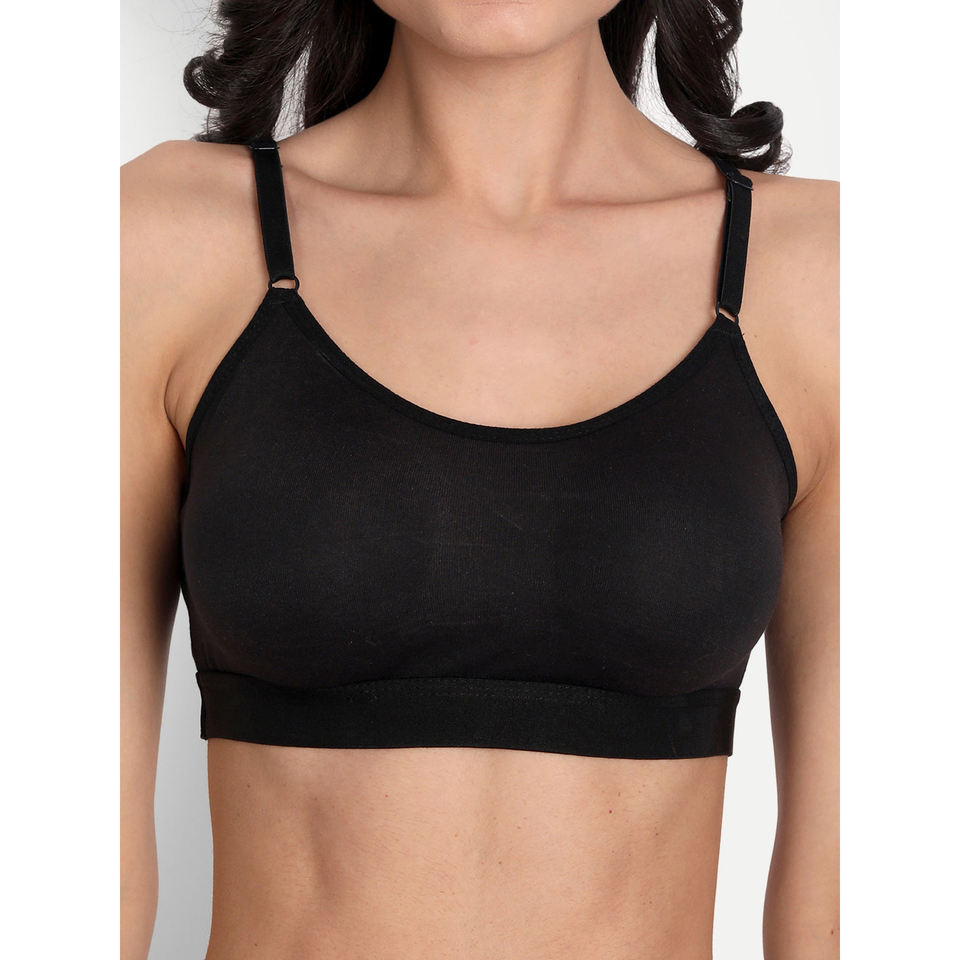 เสื้อชั้นในกีฬาผู้หญิงแบบมีโครงรองรับสูง ผ้าตาข่ายพิมพ์ลายสีดำล้วน แบบกลับด้านได้
