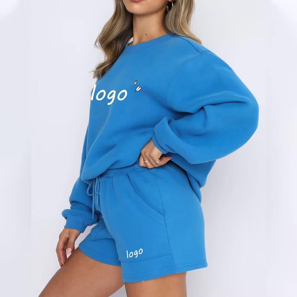 Women High Waist Above Knee Shorts and Solid Casual Knitting Sweatshirt Set Trendy Two Piece Comfort for Wear