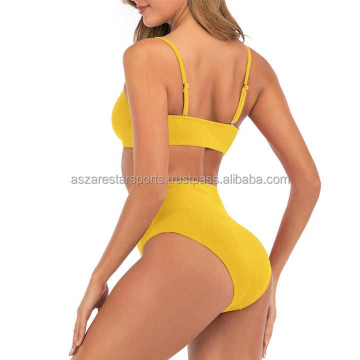 ชุดว่ายน้ำบิกินี่เอวสูงสำหรับผู้หญิงชุดว่ายน้ำชายหาดชุดบิกินี่ชายหาดออกแบบโลโก้ได้ตามต้องการ
