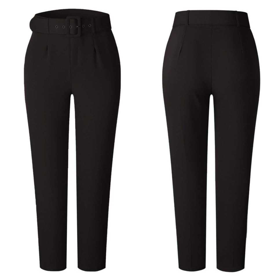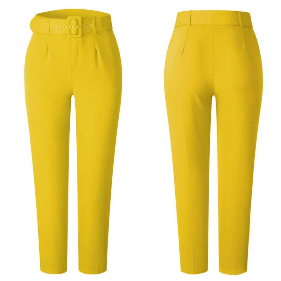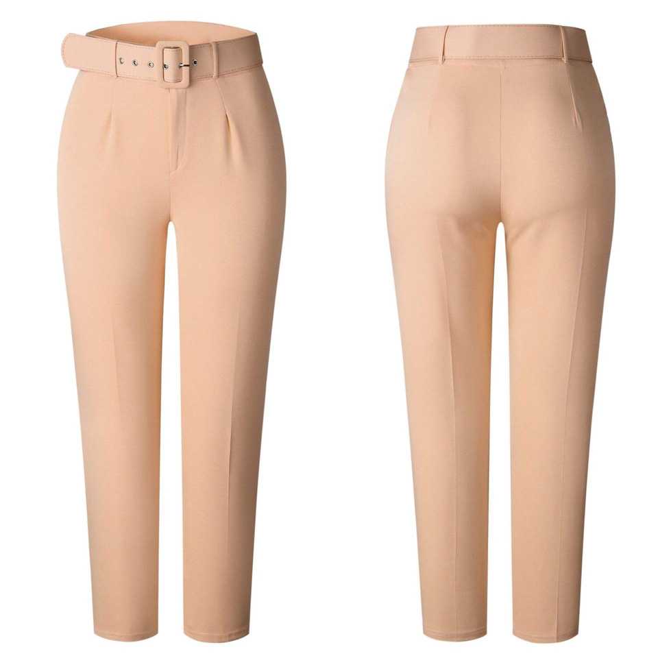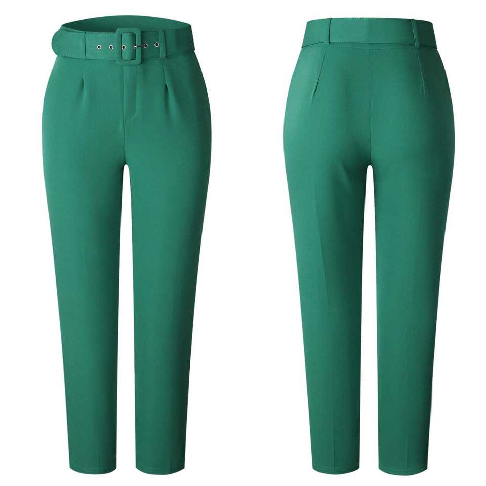 กางเกงขายาวทรงดินสอเอวสูงสำหรับผู้หญิง ความยาวข้อเท้า จับจีบ แต่งเข็มขัด สไตล์หรูหราสำหรับใส่ทำงาน