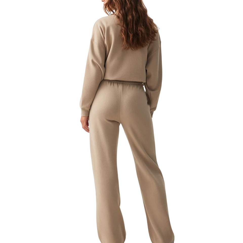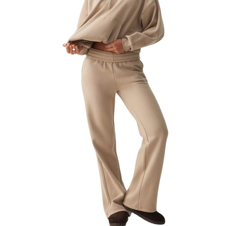 กางเกงวอร์มขายาวเอวสูงทรงหลวมสำหรับผู้หญิง ผ้าคอตตอนผสม สวมใส่สบาย เหมาะสำหรับพักผ่อน รับผลิตแบบ OEM ODM ขายส่ง