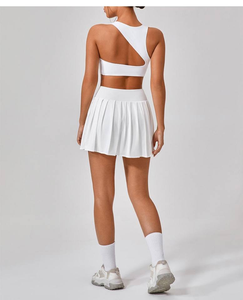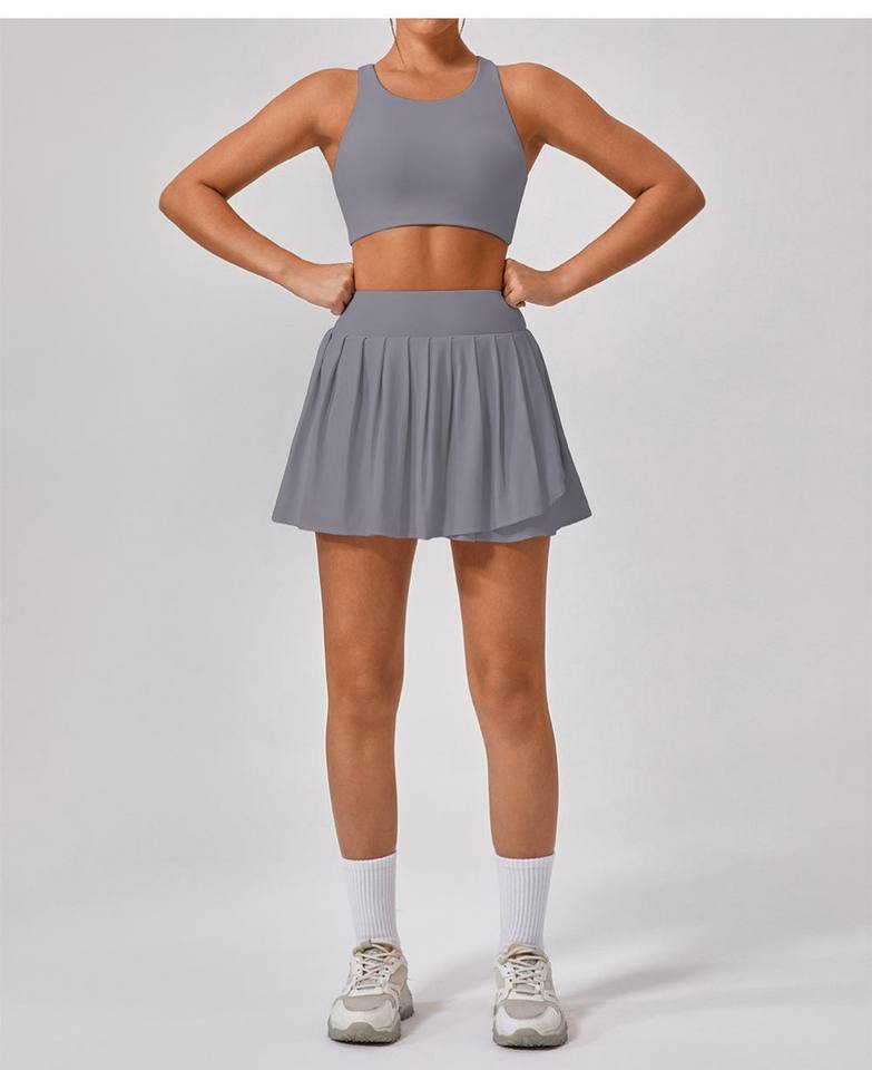 ชุดออกกำลังกายเล่นเทนนิสโยคะ3ชิ้นด้านหน้าแข็งแรงสำหรับผู้หญิงผ้าสแปนเด็กซ์/ ไนลอนยาวถึงเข่า