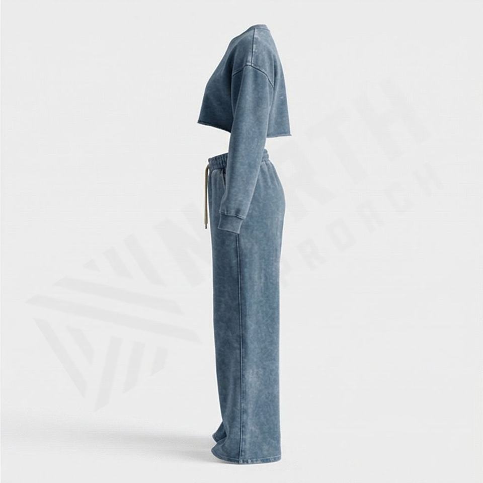 Women Hooded Streetwear 100% Cotton Crop Sweatshirt Baggy Jogger Pant 2 Piece Acid Wash Sweatsuit Set Custom Logo Athletic Wear