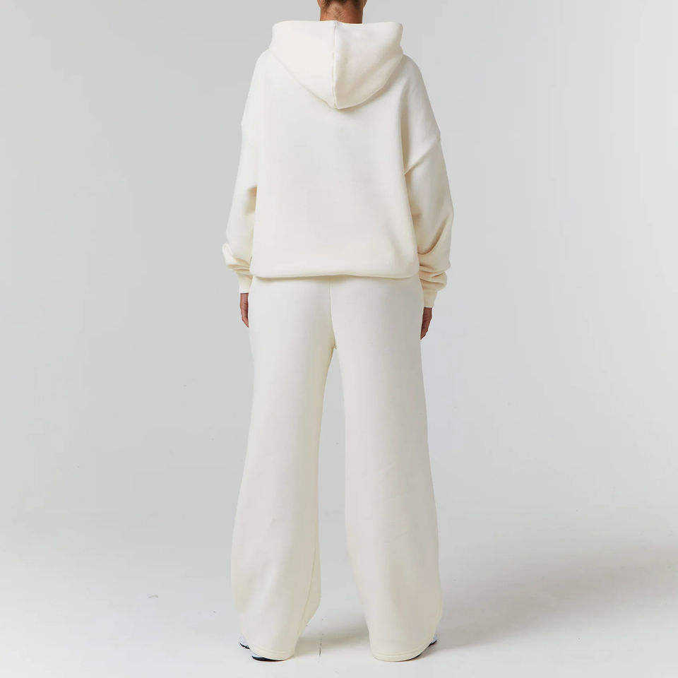 ชุดวอร์มผู้หญิงแบบสั้นมีฮู้ด สีพื้น สำหรับฤดูหนาว เสื้อและกางเกงขายาวลำลองสองชิ้น