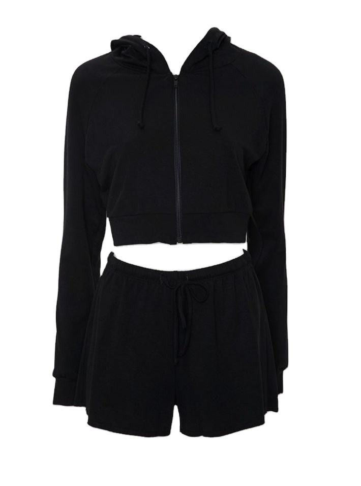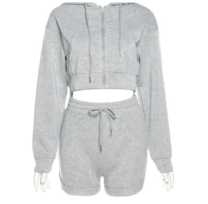 ชุดสองชิ้นสั้นมีฮู้ดสำหรับผู้หญิง