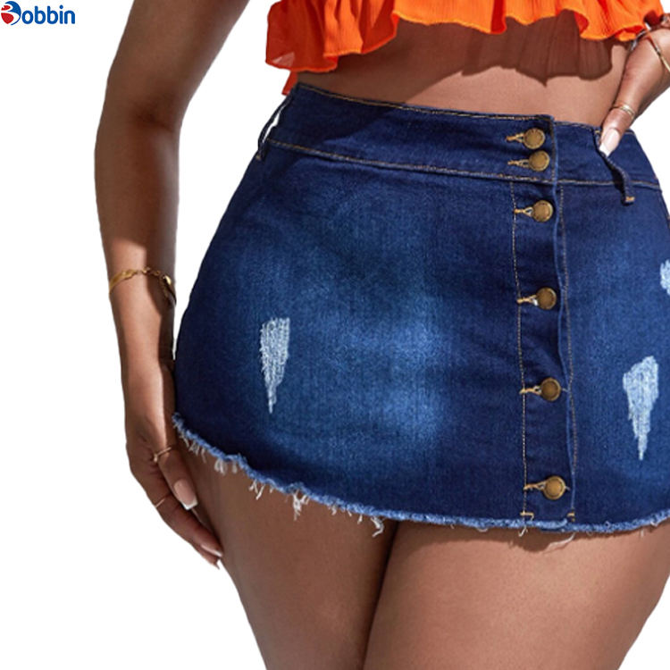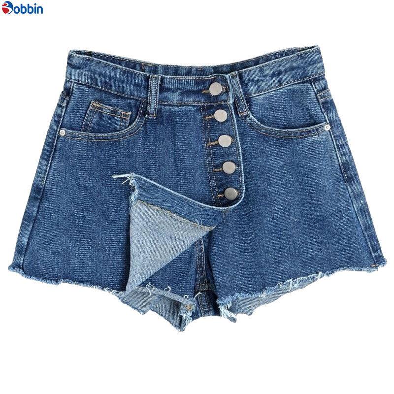 กางเกงยีนส์ขาสั้นผู้หญิง สไตล์ฮอต แฟชั่นทันสมัยสำหรับฤดูร้อน กางเกงยีนส์ขาสั้นผู้หญิง แต่งขาดๆ กระดุมติด กางเกงยีนส์สีน้ำเงิน