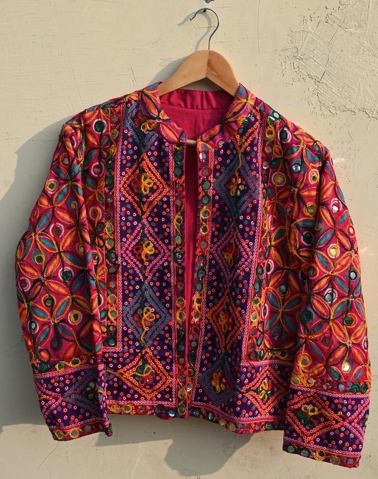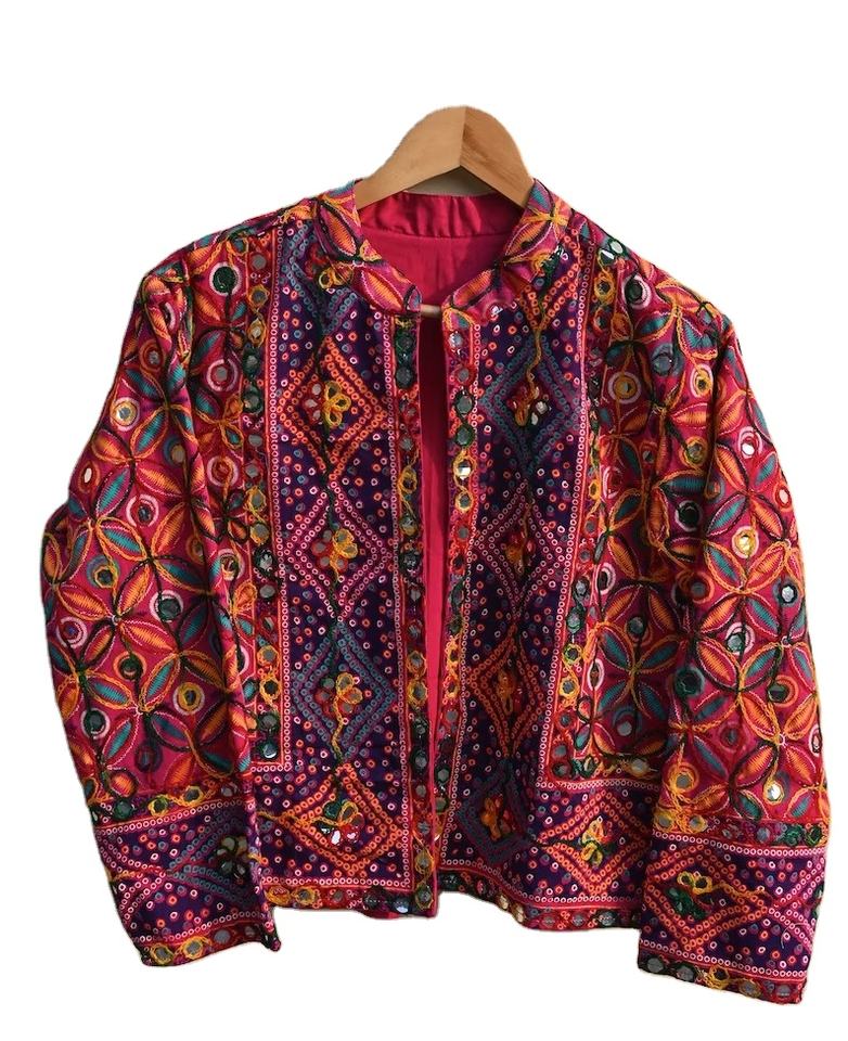 เสื้อแจ็คเก็ตวินเทจโบฮีเมียนทรงชาติพันธุ์ทำด้วยมือสไตล์วินเทจแจ็คเก็ตผ้าฝ้ายโบฮีเมียนอินเดียของขวัญเสื้อโค้ทผู้หญิงราคาโรงงานอินเดีย