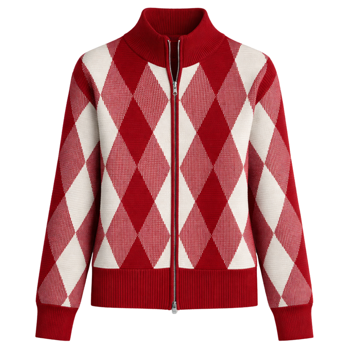 เสื้อแจ็คเก็ตผู้หญิงแบบถักลายแจ็คการ์ด ซิปด้านหน้า ลายเรขาคณิต แขนยาว สวมใส่สบายๆ สำหรับฤดูใบไม้ร่วง ฤดูหนาว และสวมใส่ในชีวิตประจำวัน
