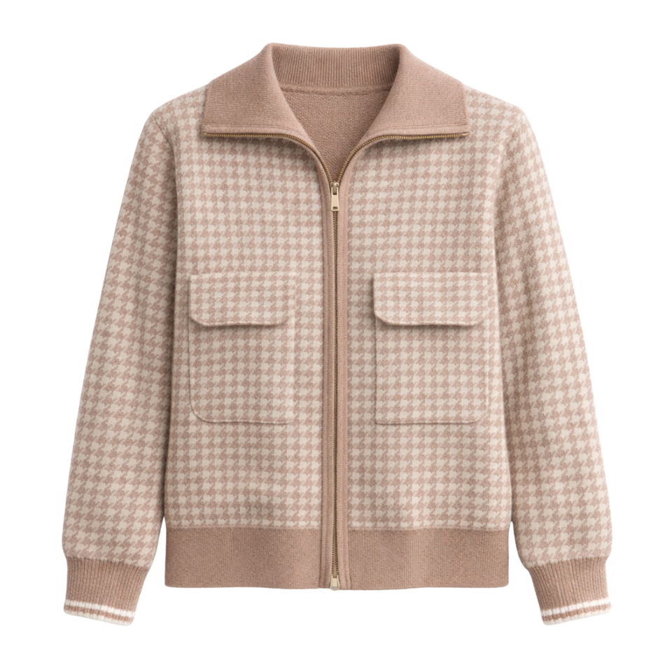 เสื้อแจ็คเก็ตผู้หญิงแบบถักลายแจ็คการ์ด ซิปด้านหน้า เนื้อผ้านุ่มลายนูน แขนยาว สวมใส่สบายๆ สำหรับทุกวัน