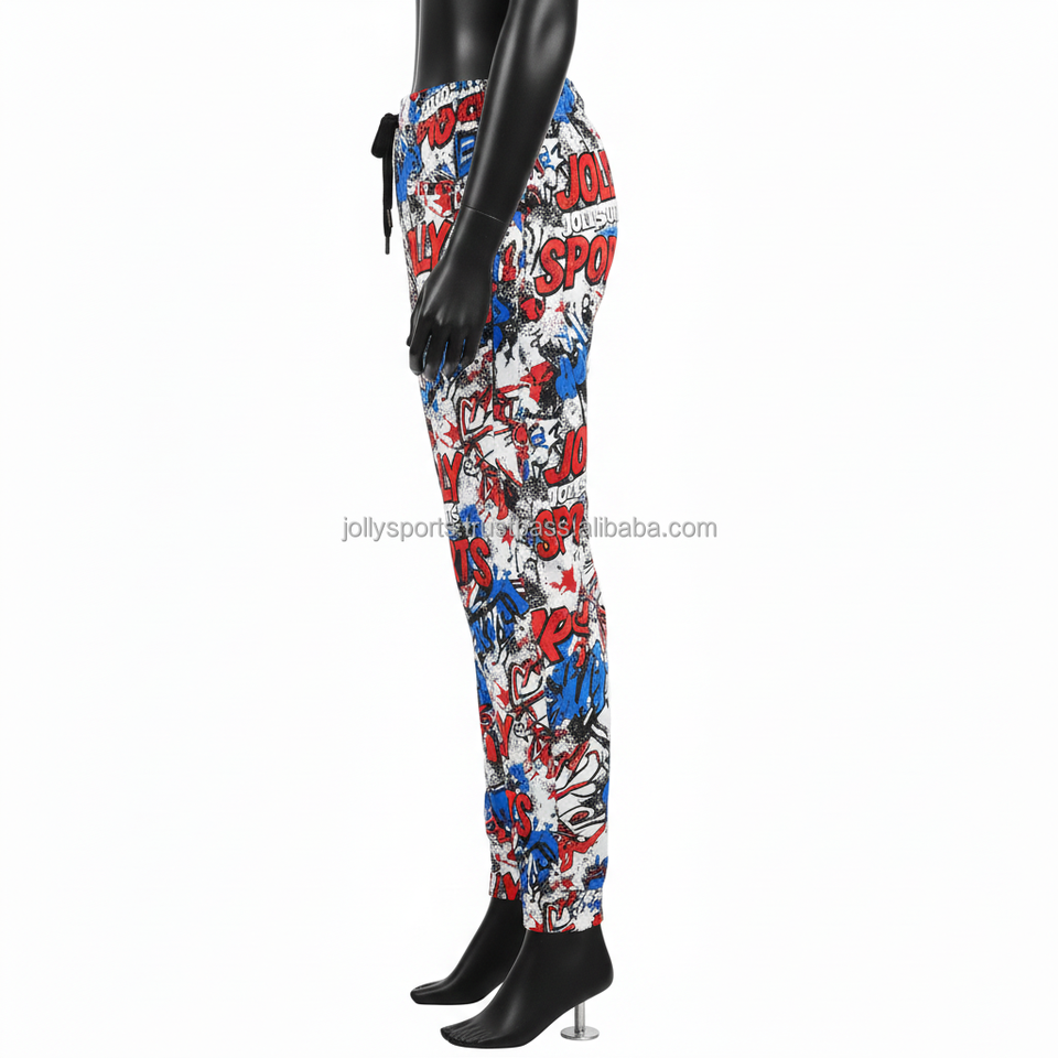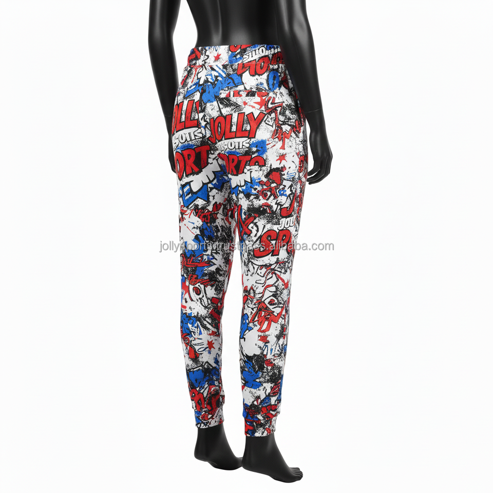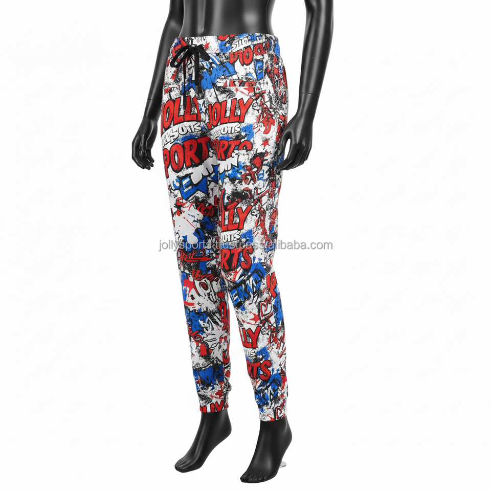 กางเกงจ็อกเกอร์ผู้หญิง ผ้าโพลีเอสเตอร์ผสมสแปนเด็กซ์คุณภาพสูง 240 GSM ระบายอากาศได้ดี ยืดหยุ่น พิมพ์ลายกราฟิก รับสกรีนโลโก้ กางเกงผู้หญิง