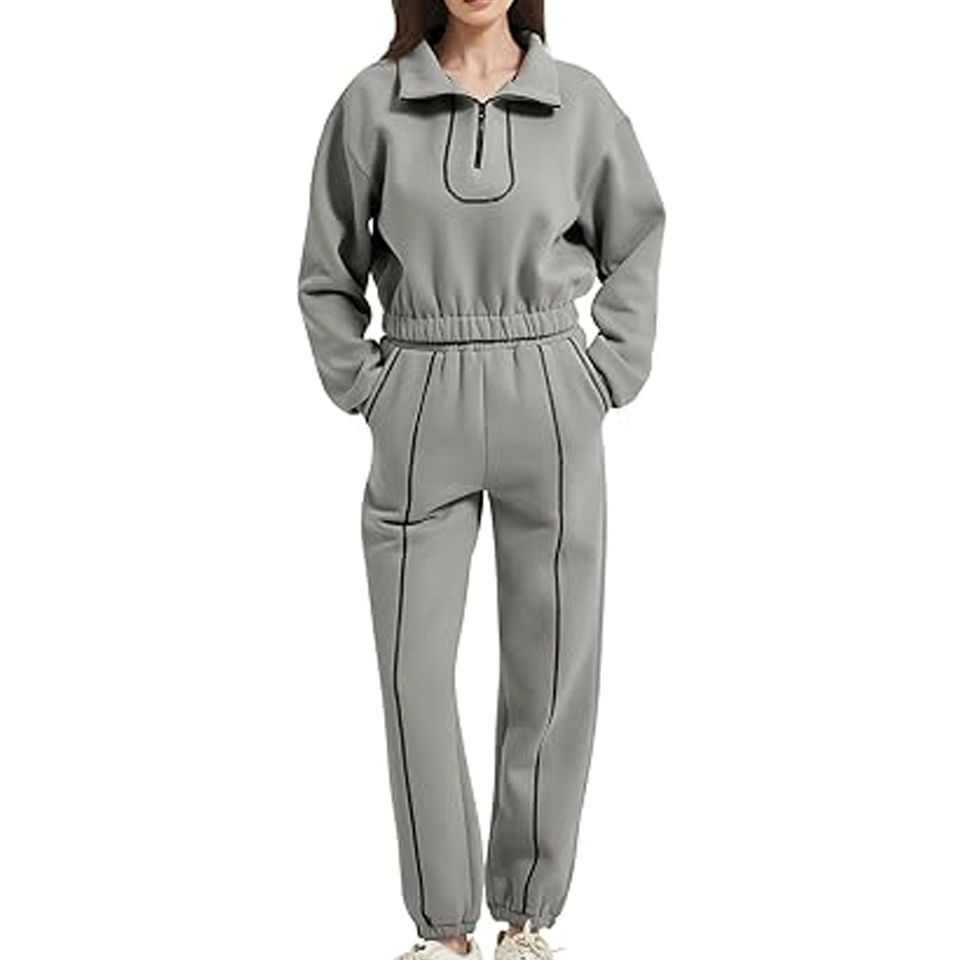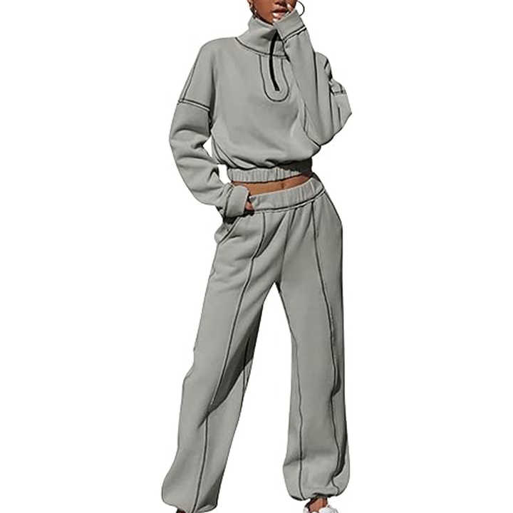 ชุดวอร์มวิ่งออกกำลังกายสำหรับผู้หญิง ชุดจ็อกเกอร์แบบสั่งทำ เสื้อฮู้ดซิปครึ่งตัวและกางเกงจ็อกเกอร์ ชุดสองชิ้น