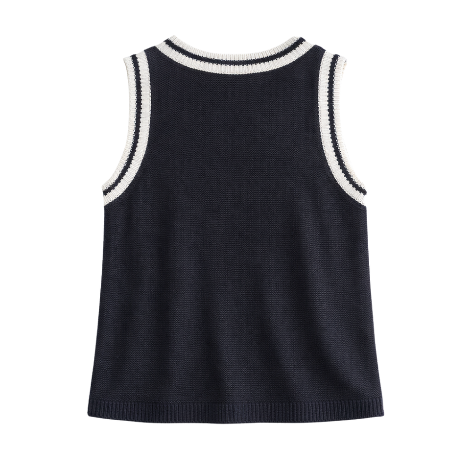 เสื้อกล้ามถักสำหรับผู้หญิง ตกแต่งด้วยการเย็บแบบคอนทราสต์ คอกลม แขนกุด สวมใส่สบายๆ ในฤดูร้อน ทรงหลวม ระบายอากาศได้ดี แฟชั่นเสื้อคลุมแบบสวม
