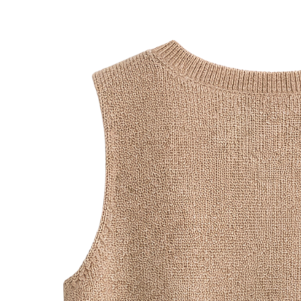 เสื้อกล้ามไหมพรมเมทัลลิกสีบรอนซ์สำหรับผู้หญิง แขนกุด คอวี ระยิบระยับ สไตล์ลำลองสำหรับฤดูร้อน ทรงหลวม แฟชั่นเสื้อสเวตเตอร์แบบสวม