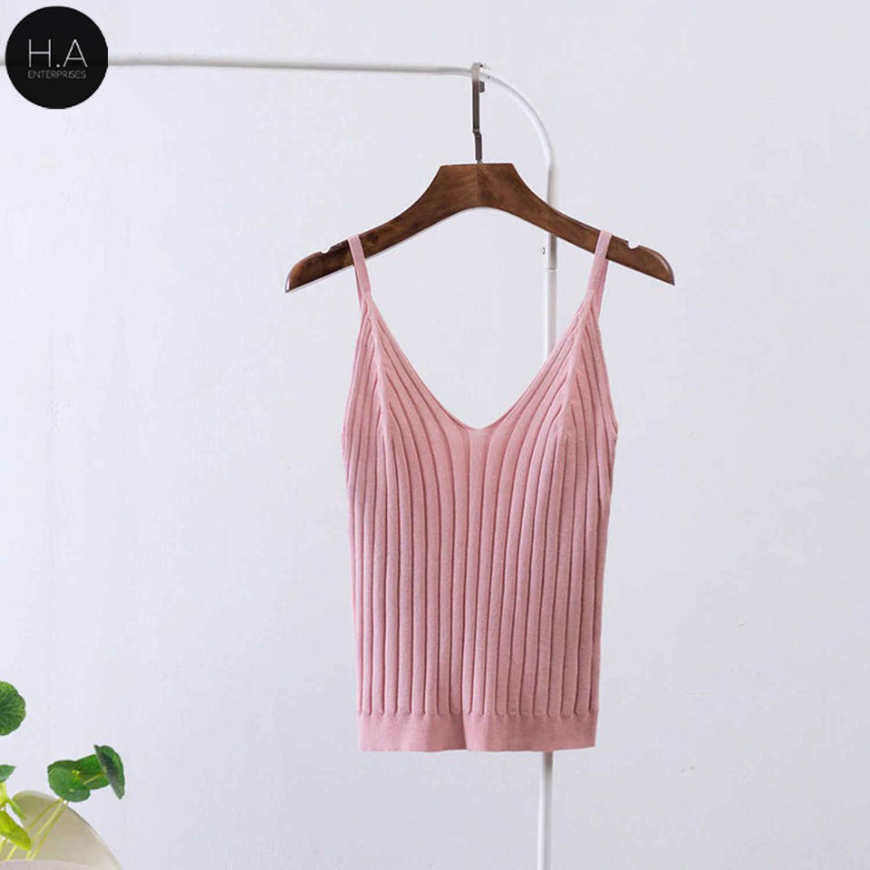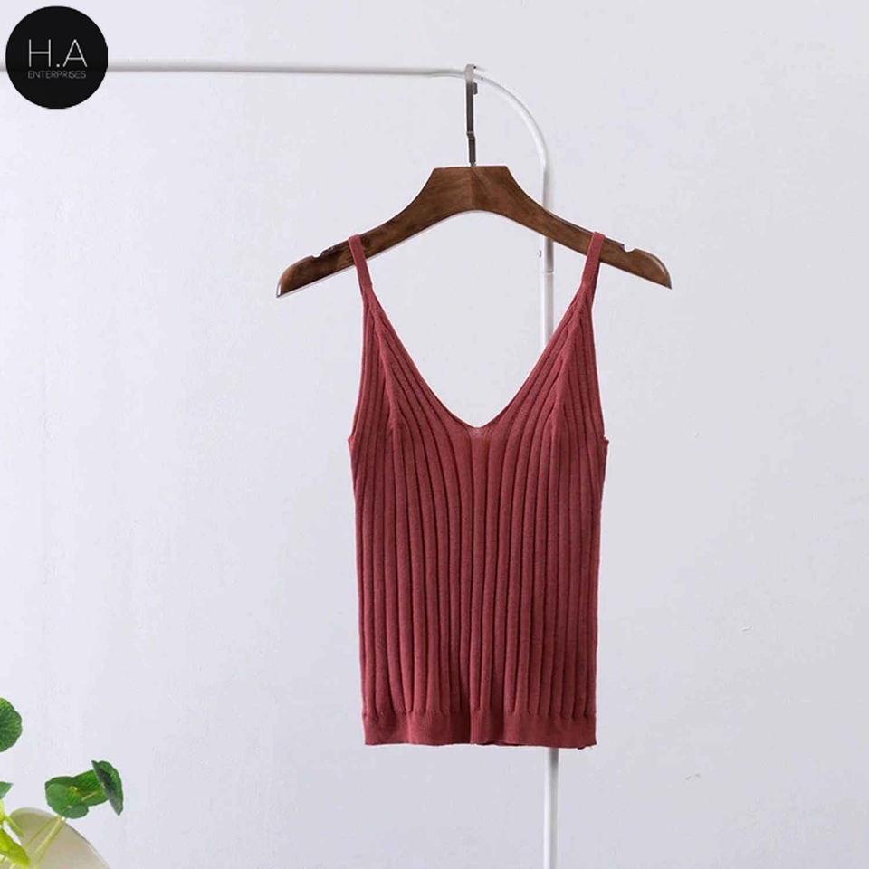เสื้อกล้ามถักแขนกุดผู้หญิง,เสื้อกล้ามสายเดี่ยวคอวียืดหยุ่นสูง