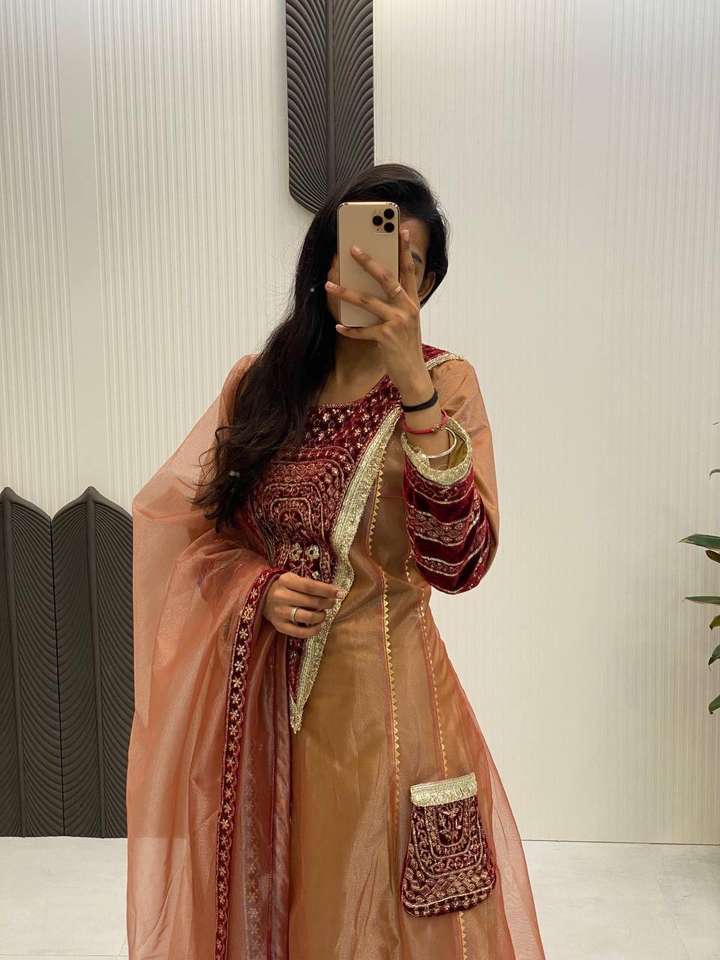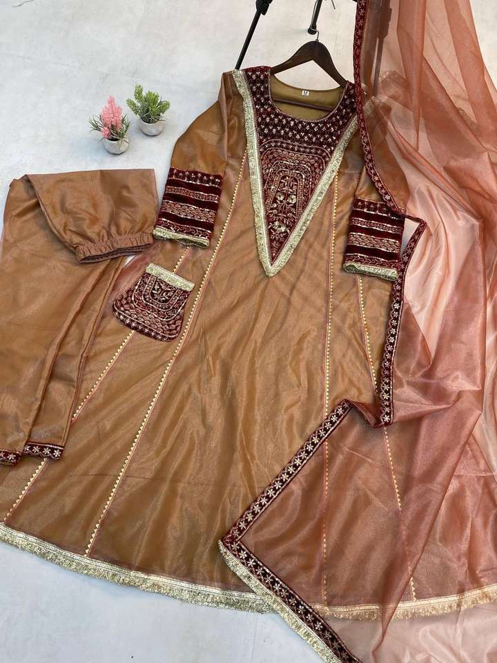 Product Name:Twill Line Velvet Embroidery Sequence Work Top Bottom & Dupatta