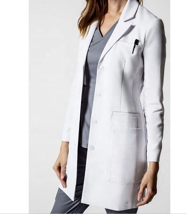 เสื้อโค้ทแลปของผู้หญิงเสื้อโค้ทสำหรับโรงพยาบาลสีขาวพยาบาลกันฝุ่นกันฝุ่นมาใหม่