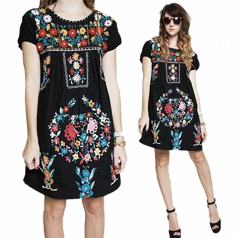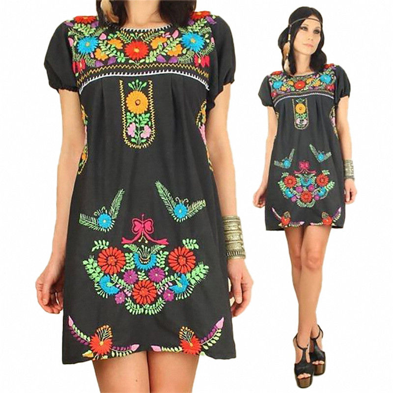 ชุดเดรสสั้นแขนสั้นสไตล์เม็กซิกันสำหรับผู้หญิง ชุดเดรสยาวหรูหรา เสื้อผ้าเม็กซิกัน
