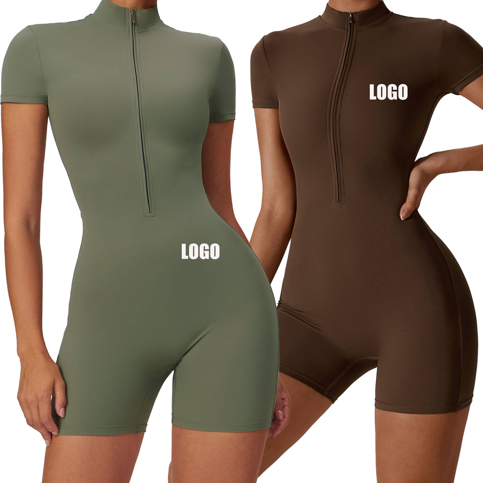 ชุดจั๊มสูทออกกำลังกายสำหรับผู้หญิงไซส์ใหญ่ พิมพ์ลาย ผ้ายืด ซิป แขนยาว ขายส่ง ชุดรอมเปอร์กีฬา เอวสูง ซิปด้านหน้า