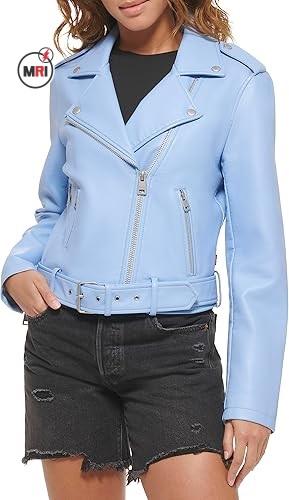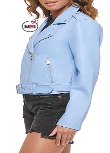 Women Lambskin Breathable High Quality Motorcycle Jacket Zip Front Belted Waist Multiple Pockets and Quilted PU Leather Jackets