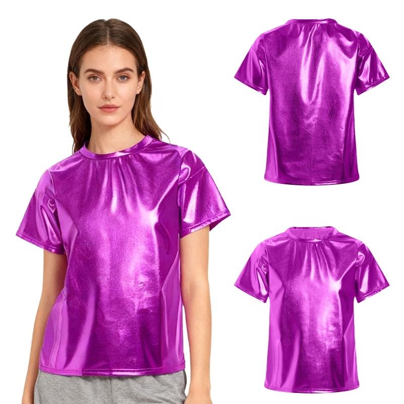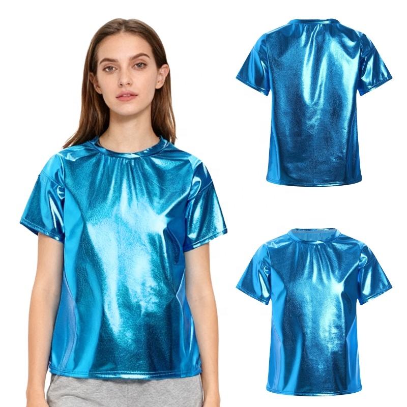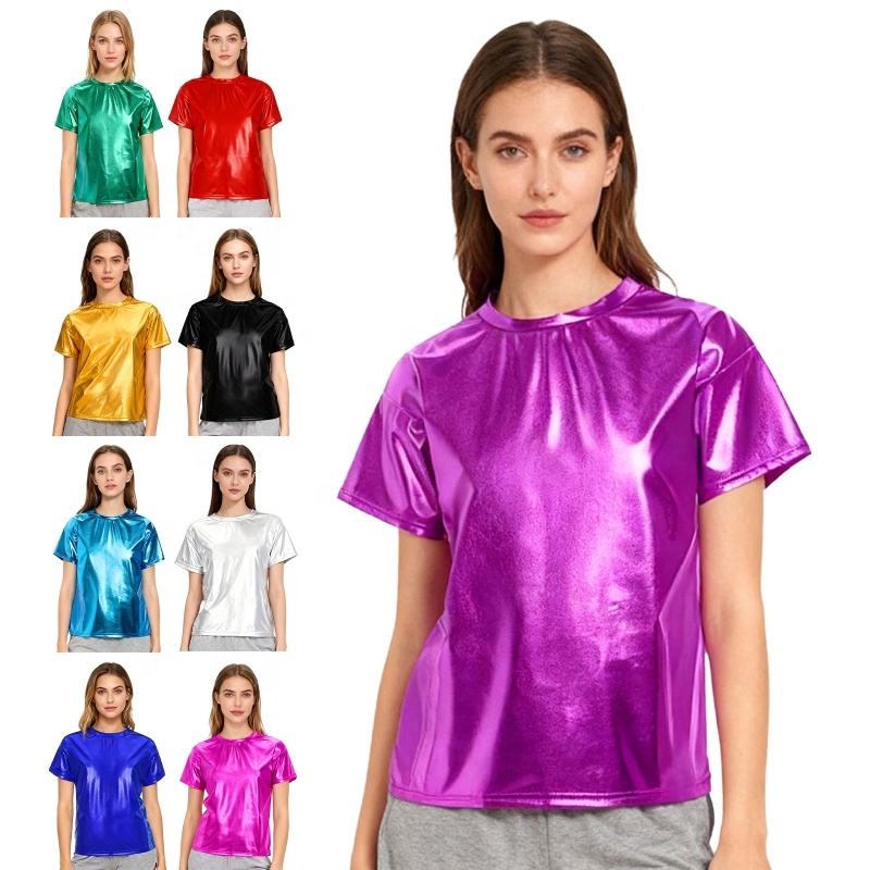 ชุดเต้นรำลาตินสำหรับผู้หญิง เสื้อยืดเมทัลลิกสำหรับการแสดง งานปาร์ตี้ เสื้อผ้าเต้นรำบอลรูมมืออาชีพ สำหรับฝึกซ้อมและการแข่งขัน