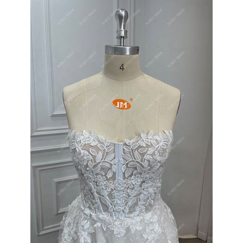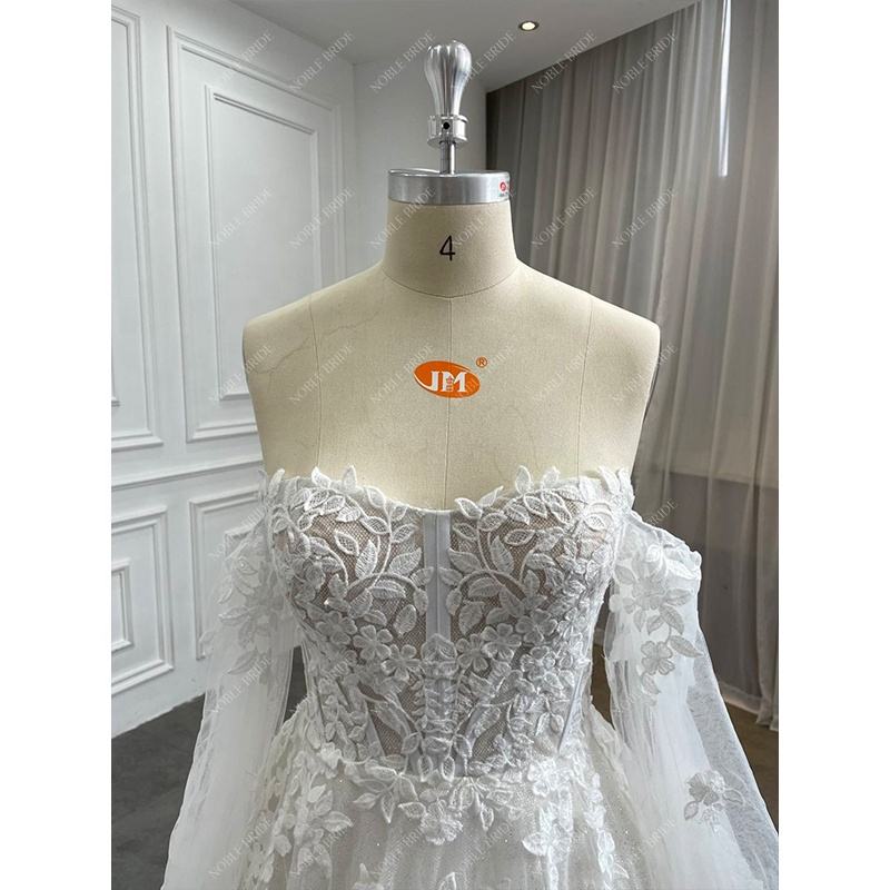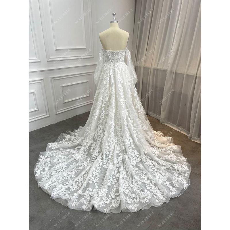 ชื่อผลิตภัณฑ์:ชุดแต่งงานแขนพองเจ้าหญิงประกายลูกไม้ลายใบไม้