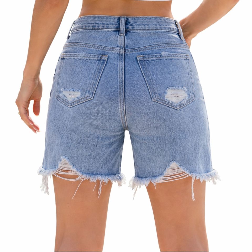 กางเกงยีนส์ขาสั้นสีฟ้าอ่อนสไตล์วินเทจสำหรับผู้หญิง เอวสูง สวมใส่สบาย เหมาะสำหรับฤดูร้อน น้ำหนักเบา