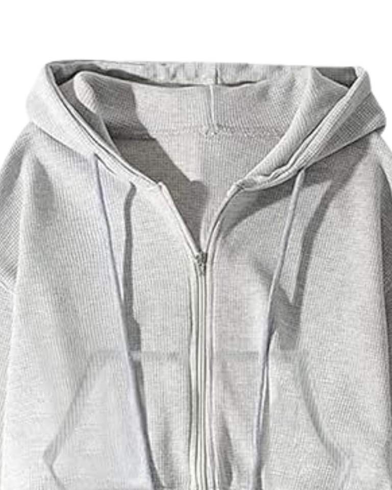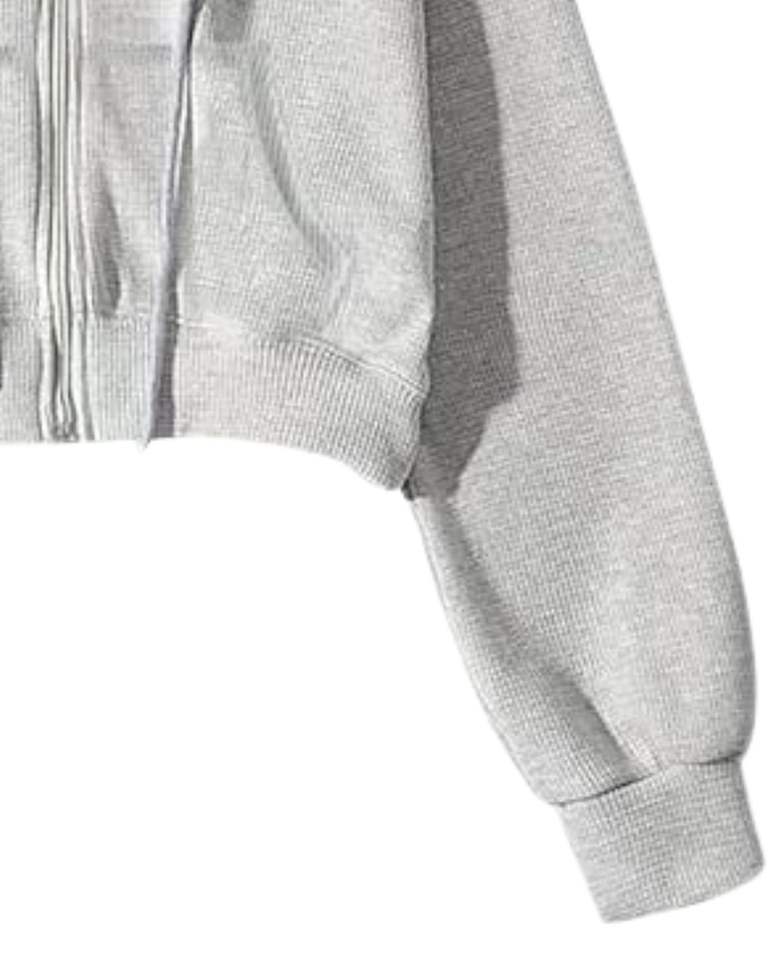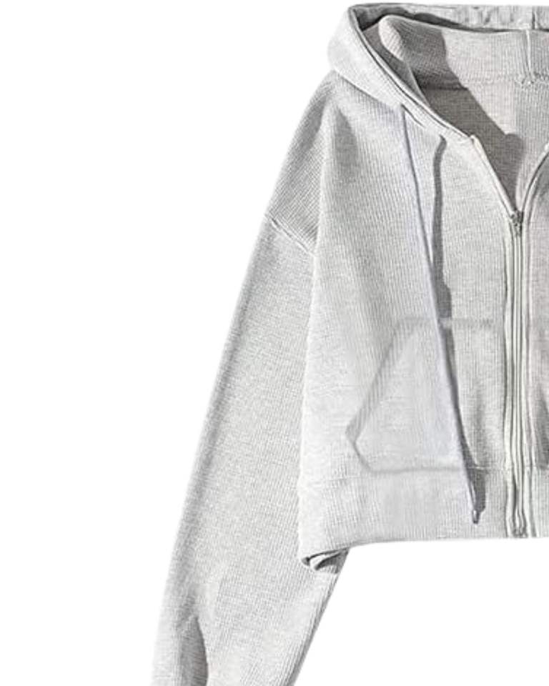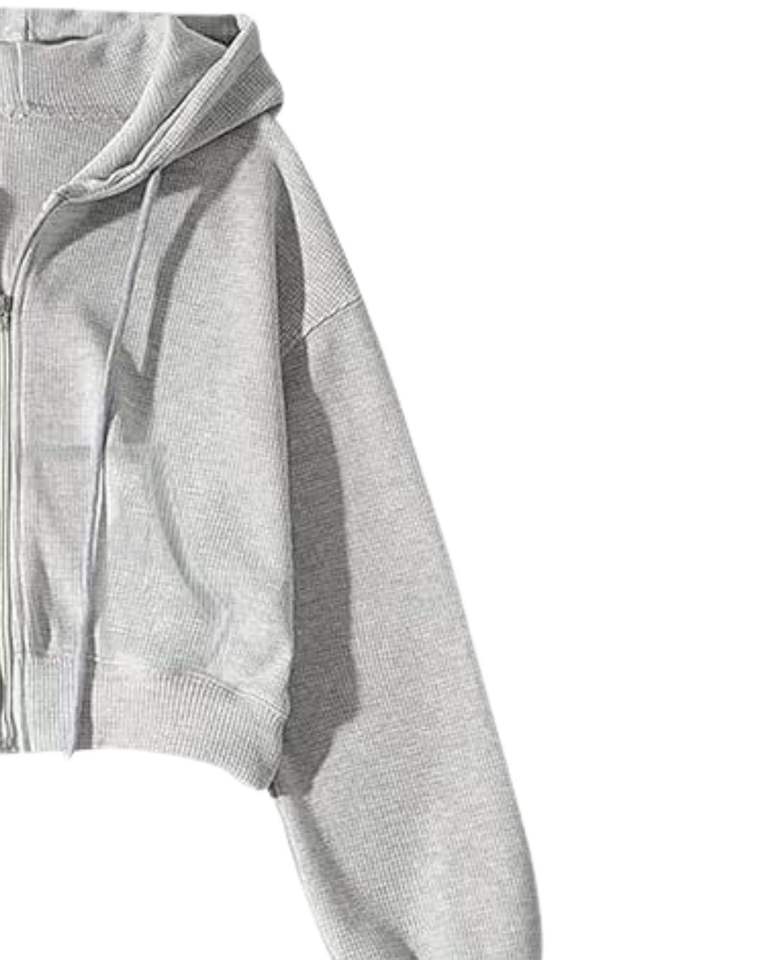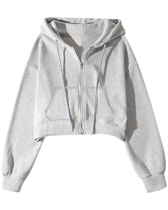 เสื้อฮู้ดครอปสีเทาอ่อนสำหรับผู้หญิง แขนยาว มีซิป พร้อมเชือกผูก ฮู้ดดี้ สไตล์ลำลอง สตรีทแวร์ แฟชั่นฤดูหนาว เสื้อท่อนบนสำหรับสุภาพสตรี