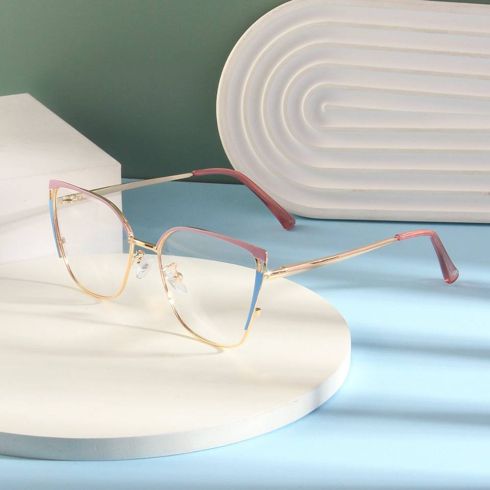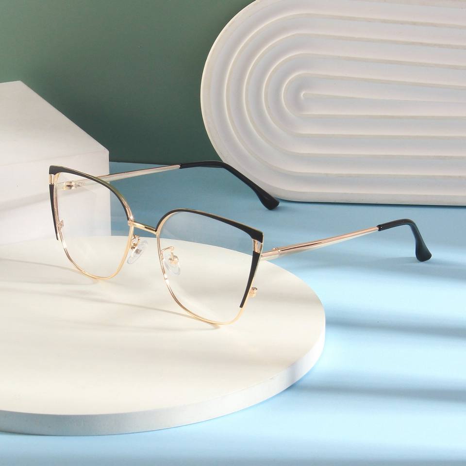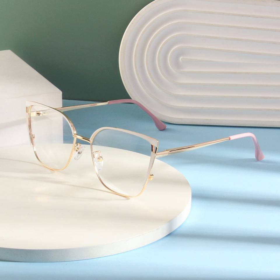 แว่นตาออพติคอลทรงแคทอายแบบเต็มกรอบโลหะ น้ำหนักเบา สวมใส่สบาย ป้องกันแสงสีฟ้า ดีไซน์เรโทรคลาสสิก สำหรับผู้หญิง เหมาะสำหรับใช้ในชีวิตประจำวันและกับคอมพิวเตอร์