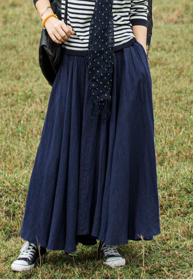 ชื่อผลิตภัณฑ์:กระโปรงยาวผ้าลินินสีทึบ