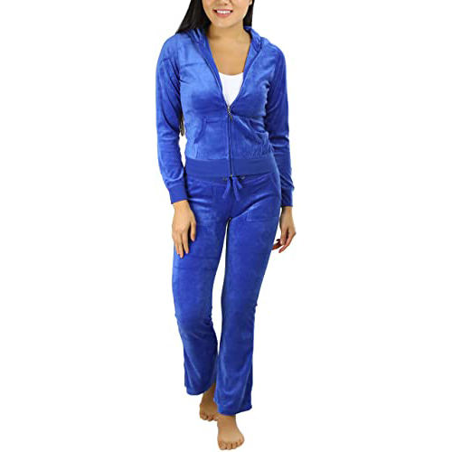 ชุดกีฬาแขนยาวมีฮู้ดซิปสำหรับผู้หญิงชุดวอร์ม2ชิ้นมีกระเป๋าสำหรับผู้หญิง