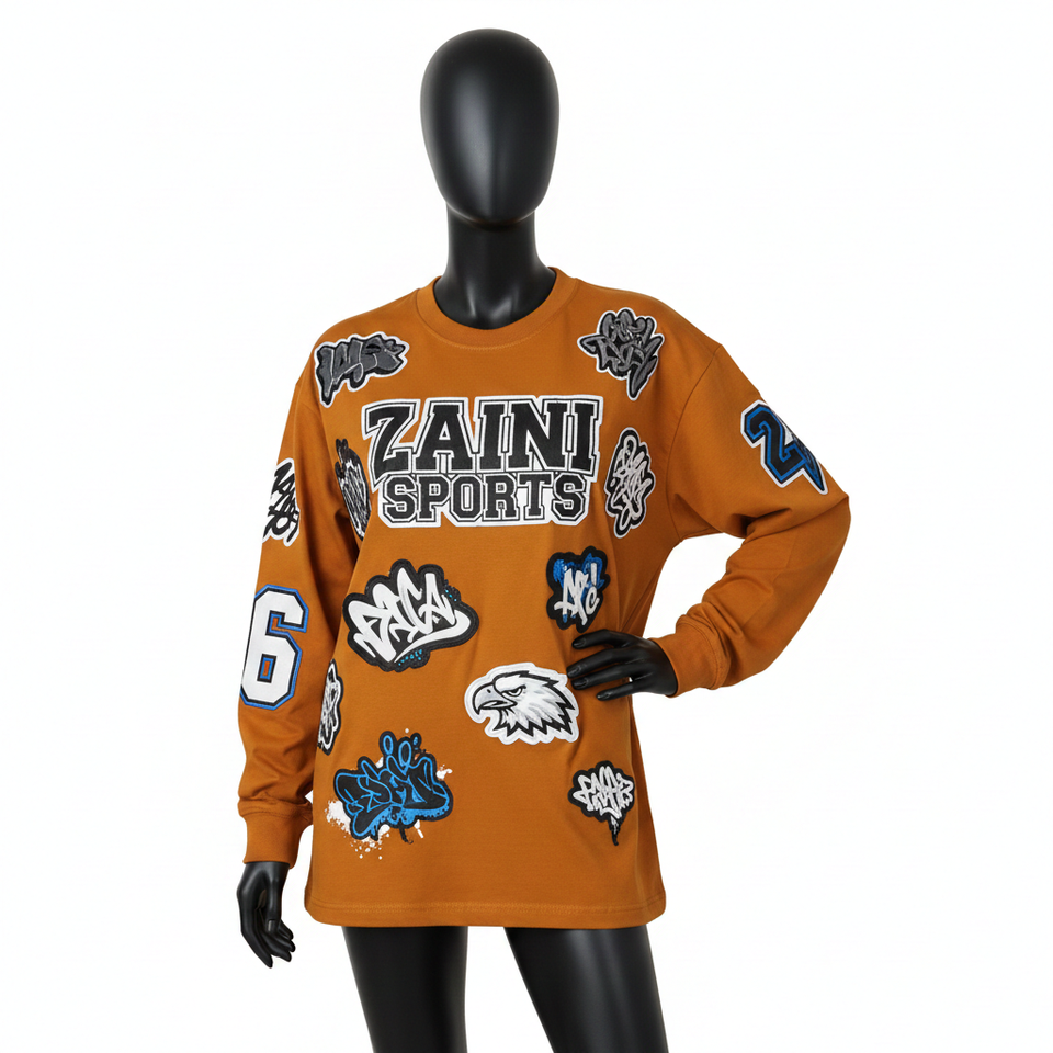 เสื้อยืดแขนยาวผู้หญิง ผ้าฝ้ายเนื้อนุ่ม GSM หนา ลายกราฟิกปัก ปักโลโก้ตามสั่ง เสื้อแขนยาวผ้าฝ้าย