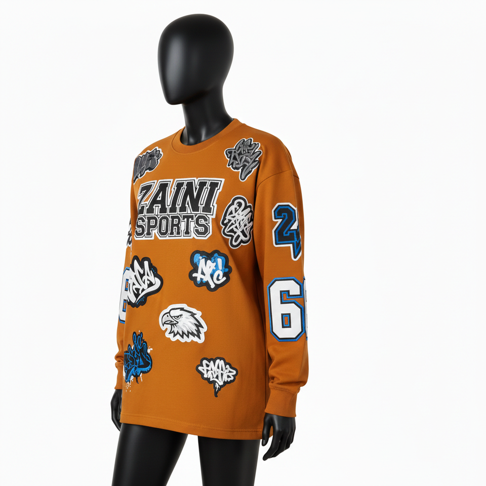 ตำแหน่งโลโก้:ด้านหน้า, ด้านหลัง, แขนเสื้อด้านซ้าย, แขนเสื้อด้านขวา