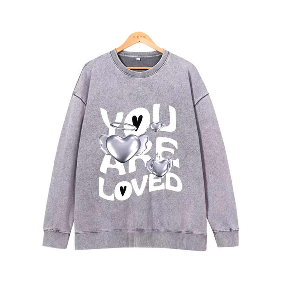 เสื้อฮู้ดดี้ผู้หญิงทรงหลวม พิมพ์ลาย โอเวอร์ไซส์ ไหล่ตก ผ้าฝ้าย พิมพ์ลายกราฟิกตามสั่ง ผ้าไม่ยับ