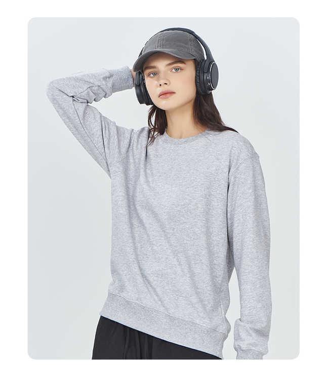 เสื้อสเวตเตอร์คอกลมทรงหลวมสำหรับผู้หญิงเสื้อมีฮู้ดแขนยาวผ้าโพลีเอสเตอร์ผ้าสแปนเด็กซ์