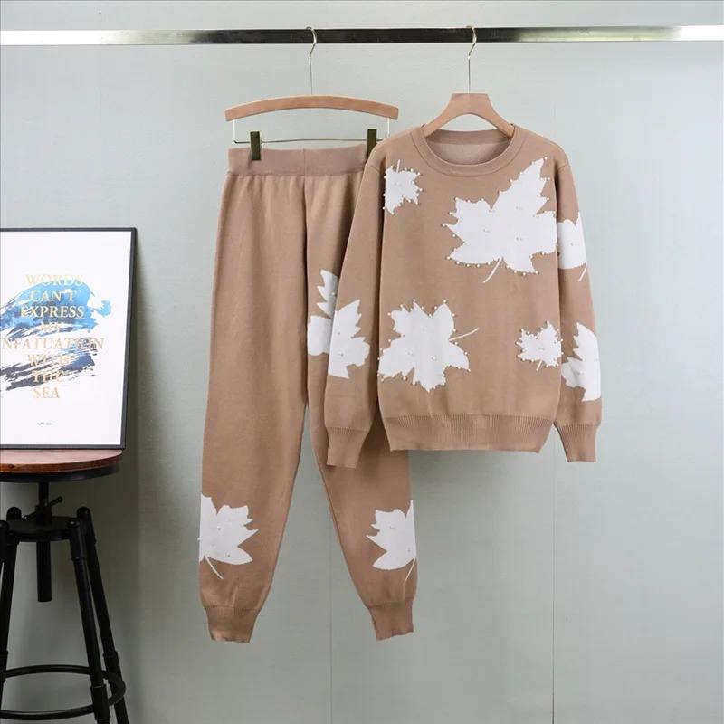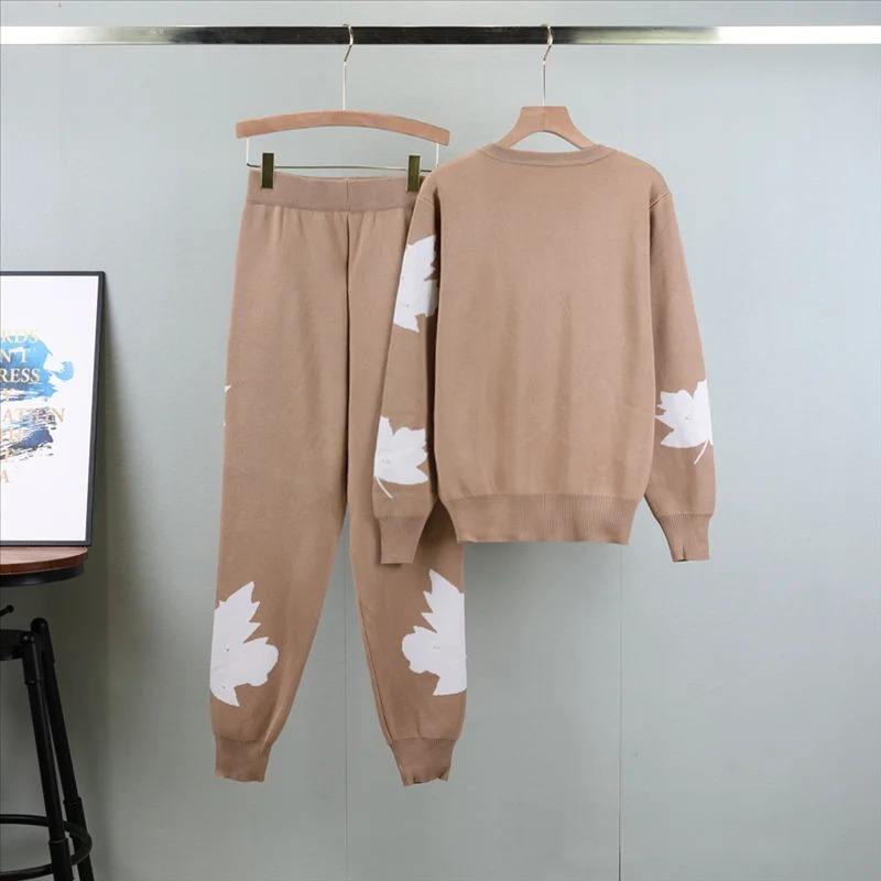 Women Loose Sets O-Neck Pullover Sweater+Elastic High Waist Pants Autumn Winter Casual 2-piece Suits 2024 New