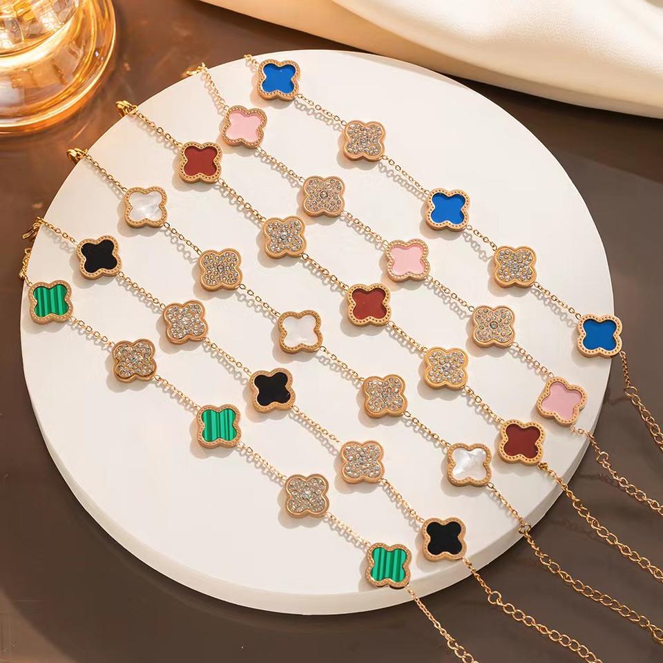 Women Luxury Flower Shaped Fadeless Titanium Steel 18K Gold Plated Rhinestone Bangles Four Clover Bracelet