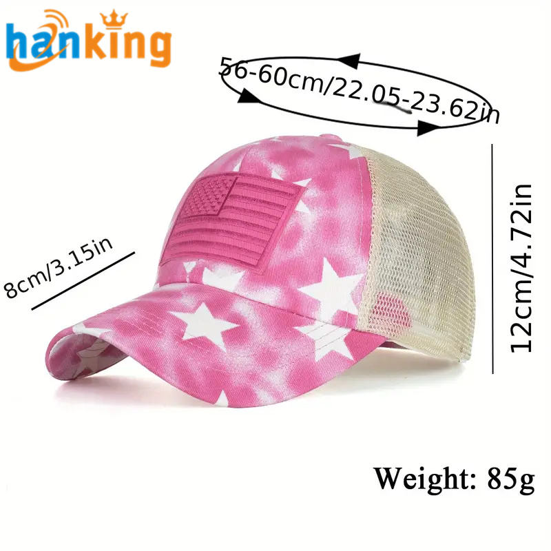 หมวกเบสบอลลายทางลายธงชาติอเมริกันยูนิเซ็กซ์หมวกแบบสปอร์ตผ้าตาข่ายต่อกันและระบายอากาศได้ดีสำหรับผู้ชายและผู้หญิง