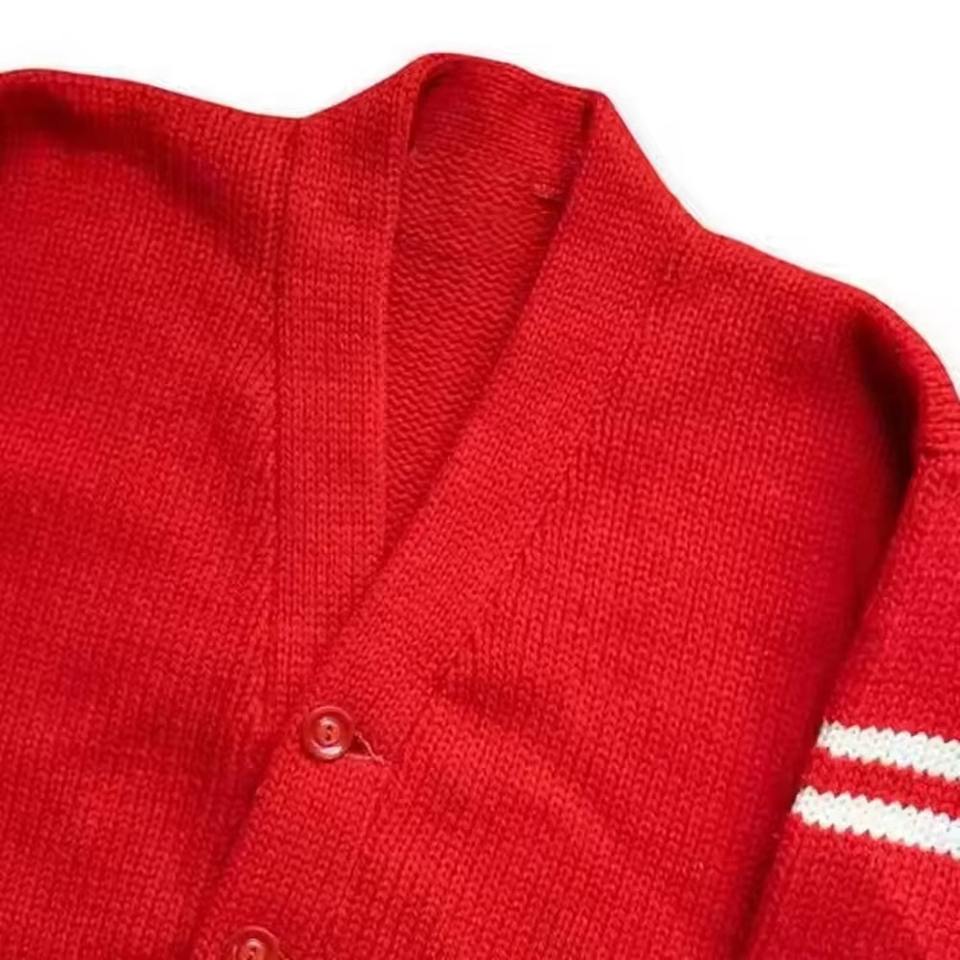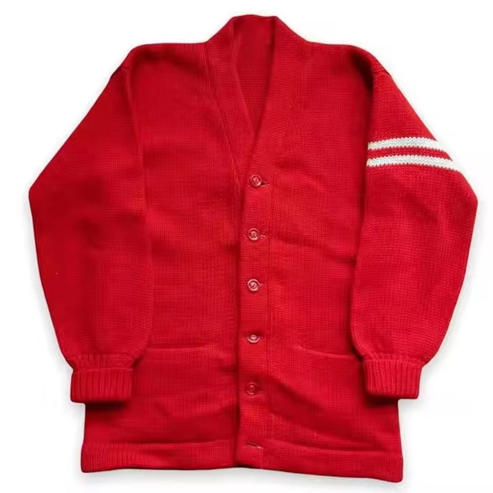 เสื้อคาร์ดิแกนถักแบบเปิดด้านหน้าสำหรับผู้หญิงและผู้ชาย สไตล์ลำลองสำหรับฤดูใบไม้ร่วง พร้อมงานปักและกระดุม ทำจากผ้าฝ้าย สีแดง
