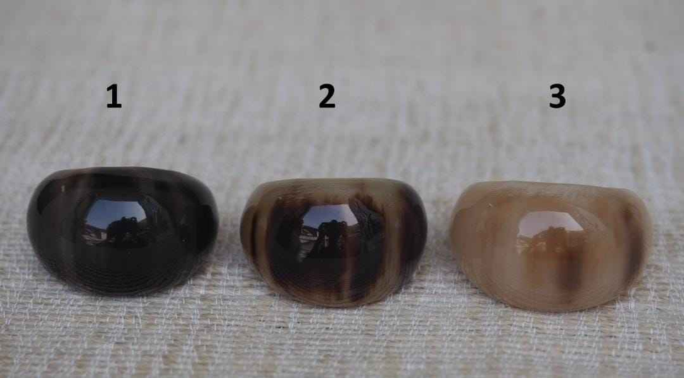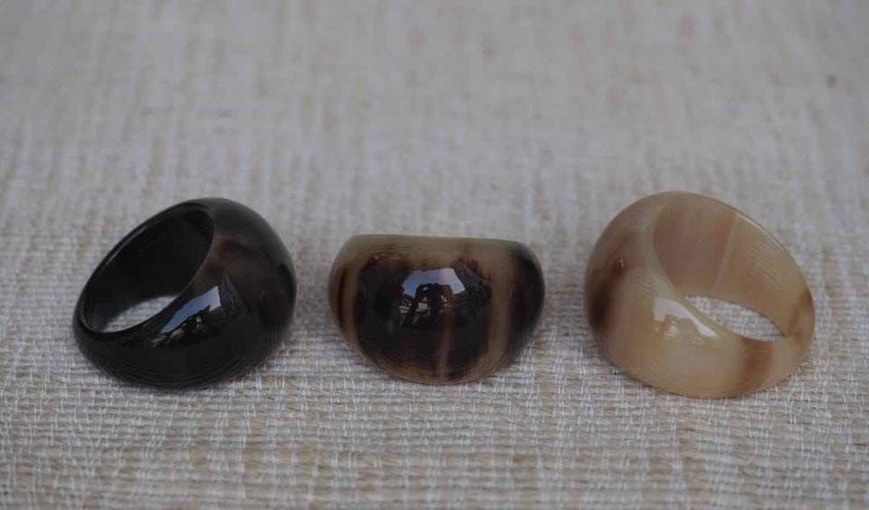 แหวนเขาควายลายทางสีดำน้ำตาล ทำมือ เป็นมิตรกับสิ่งแวดล้อม สำหรับผู้หญิงและผู้ชาย รูปทรงสั่งทำพิเศษ สำหรับงานแต่งงาน โดย Saniya Handicraft