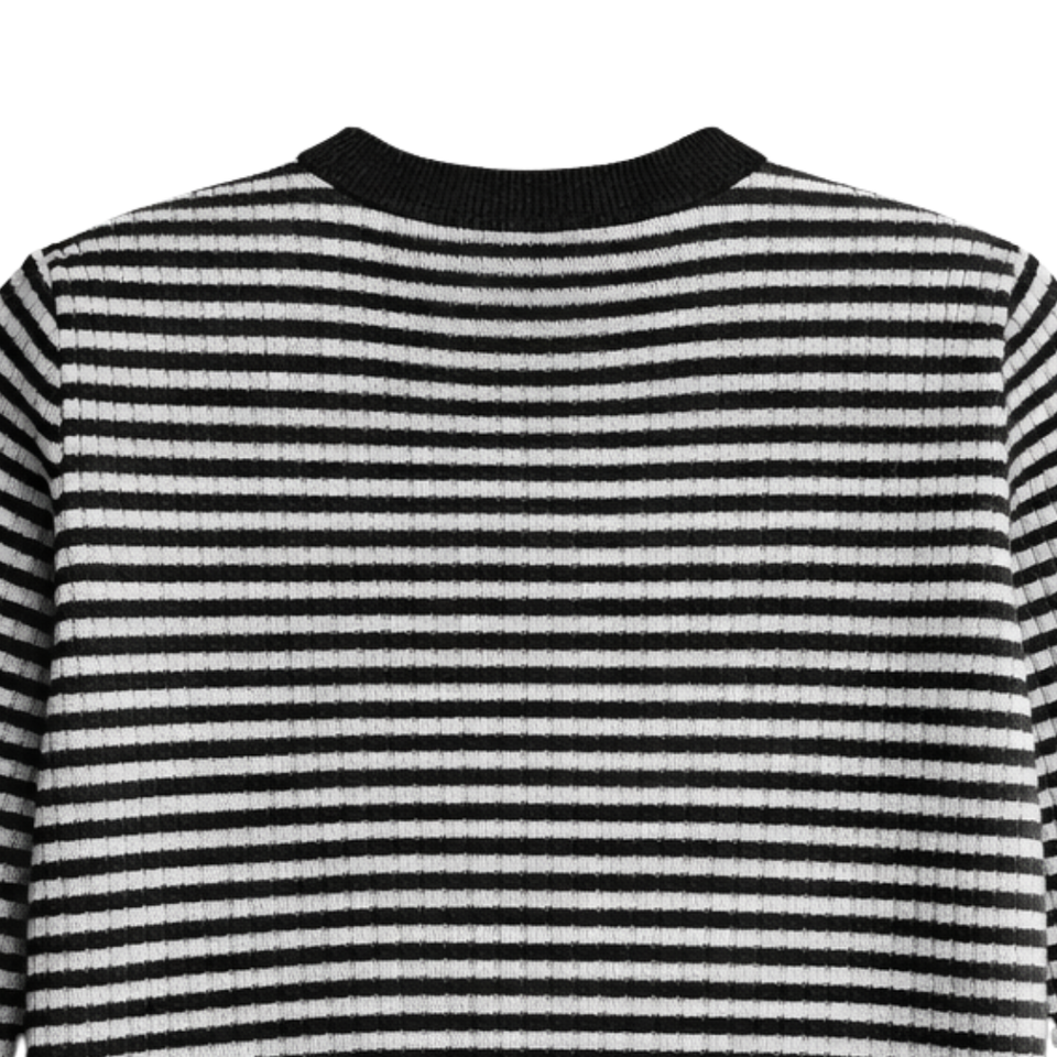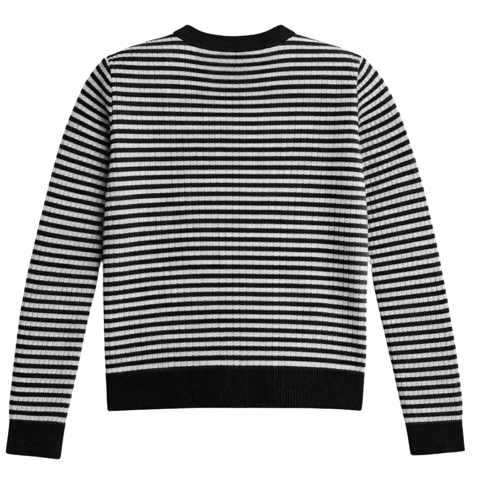 เสื้อไหมพรมเมอริโนผู้หญิง คอกลม แขนยาว เนื้อผ้าน้ำหนักเบา นุ่มสบาย ลายทาง สวมใส่สบายๆ ใช้เป็นเสื้อตัวในหรือเสื้อตัวนอกได้ แฟชั่นทันสมัย