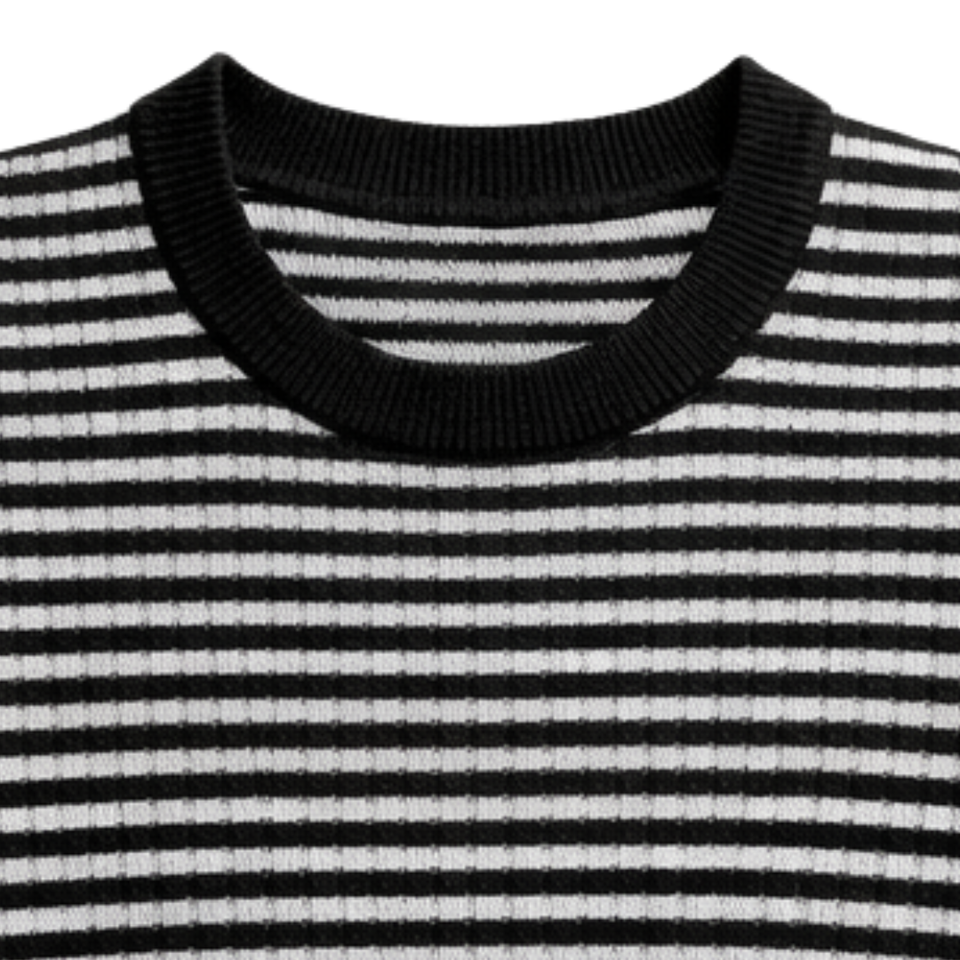 เสื้อไหมพรมเมอริโนผู้หญิง คอกลม แขนยาว เนื้อผ้าน้ำหนักเบา นุ่มสบาย ลายทาง สวมใส่สบายๆ ใช้เป็นเสื้อตัวในหรือเสื้อตัวนอกได้ แฟชั่นทันสมัย