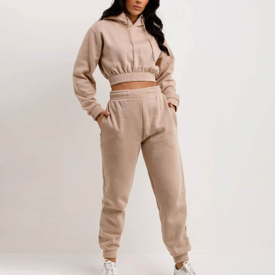 ชุดวอร์มวิ่งแบบครอปทันสมัยสำหรับผู้หญิง ชุดออกกำลังกายแบบครอปมีสไตล์สำหรับการออกกำลังกายที่ยิม