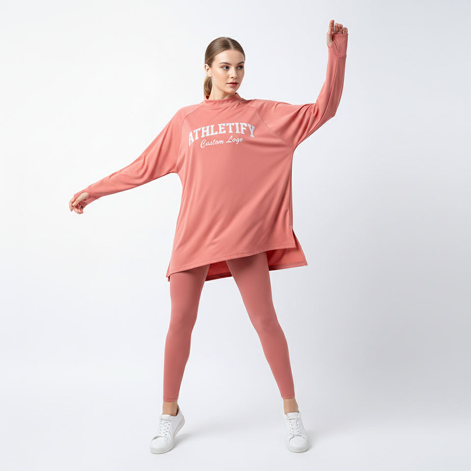 เสื้อทูนิคทรงยาวสำหรับผู้หญิง แขนยาว ทรงหลวม ระบายอากาศได้ดี แห้งเร็ว เป็นมิตรกับสิ่งแวดล้อม เหมาะสำหรับออกกำลังกาย ยิม โยคะ