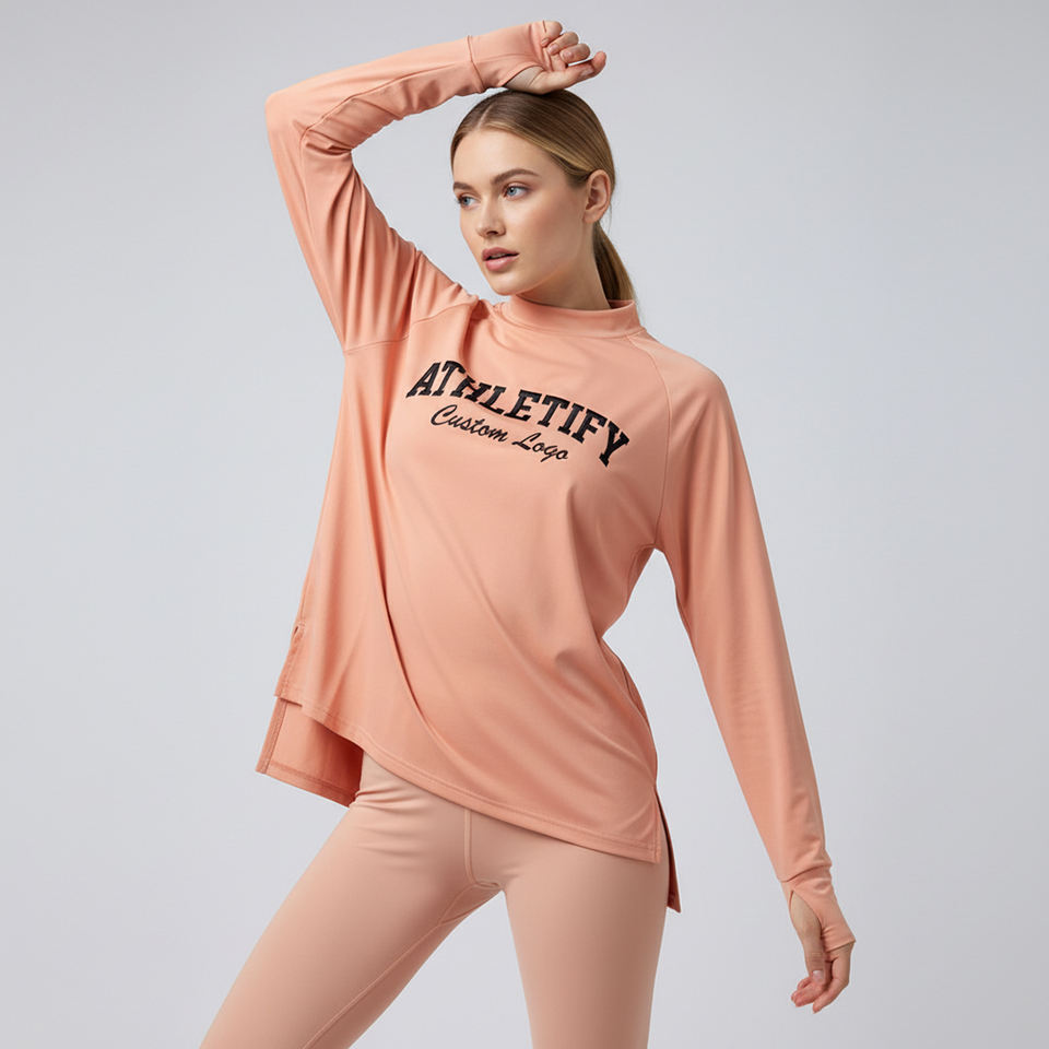 เสื้อทูนิคทรงหลวม ระบายอากาศได้ดี เป็นมิตรกับสิ่งแวดล้อม ชายเสื้อสูงต่ำ แขนยาว เหมาะสำหรับออกกำลังกาย โยคะ วิ่ง เดินทาง ใส่สบายๆ ไซส์ใหญ่