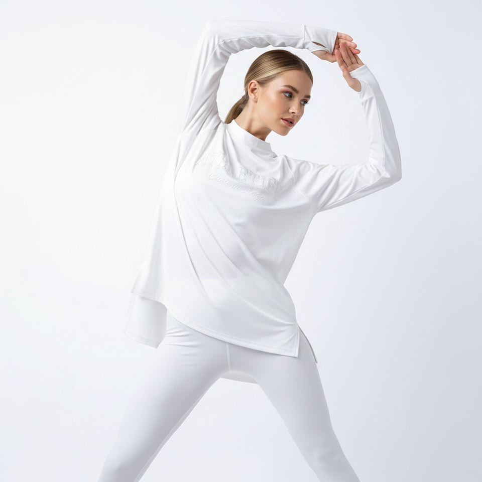 Keywords:Plus size Long Tunic Sleeve Workout Top Athletic Sublimated