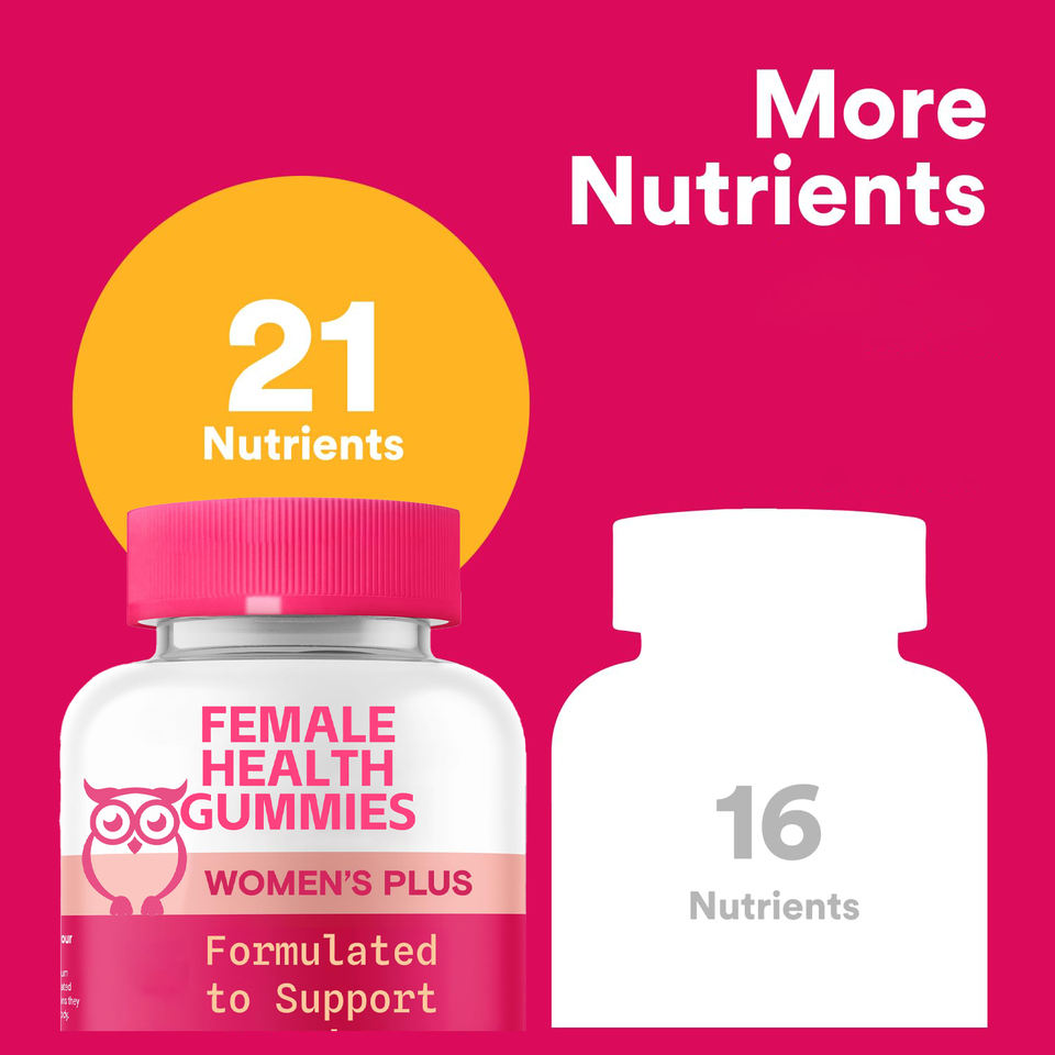 วิตามินรวมสำหรับผู้หญิงแบบกัมมี่ ผสมธาตุเหล็ก กรดโฟลิก และไบโอติน สูตรพิเศษเพื่อผิวเปล่งปลั่งและบำรุงสุขภาพช่วงมีประจำเดือน